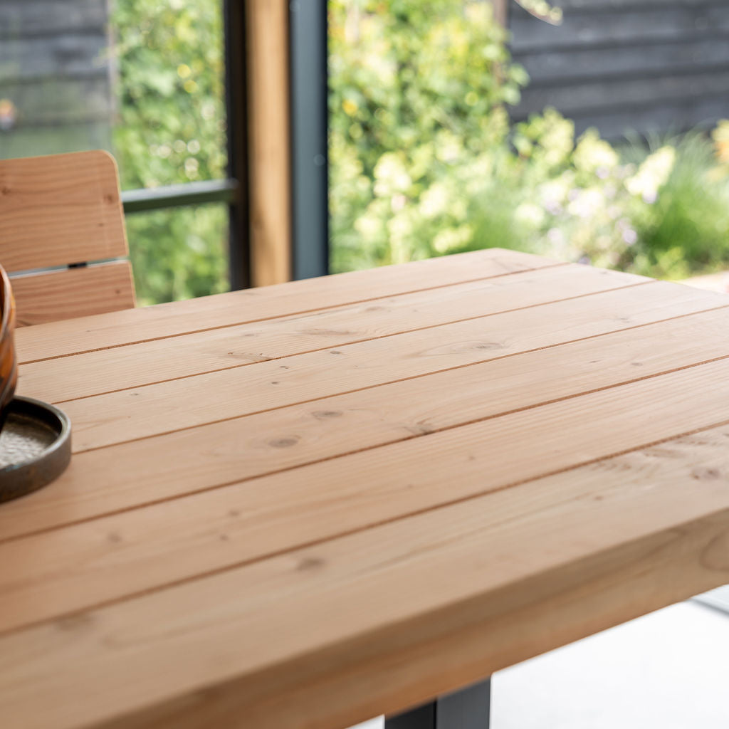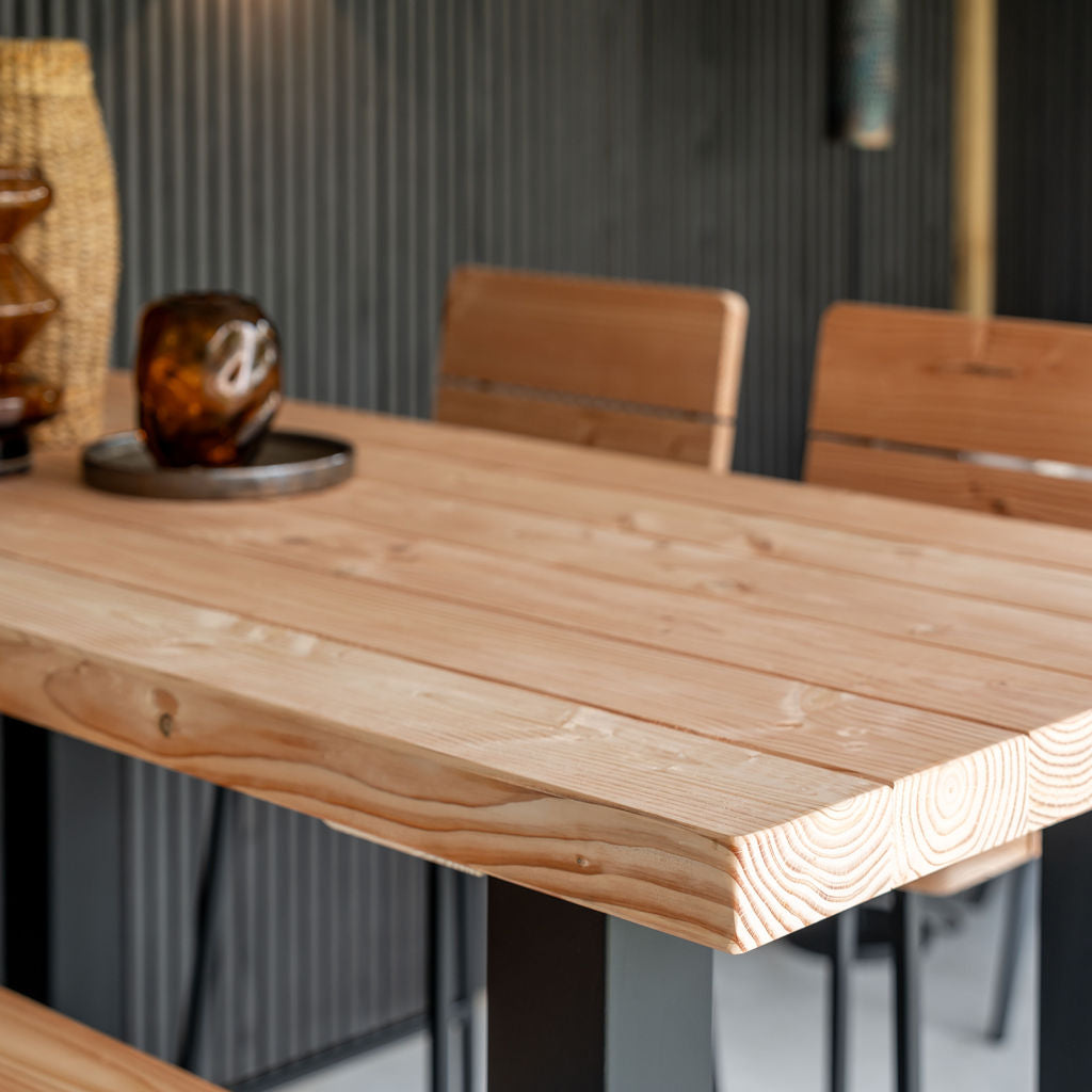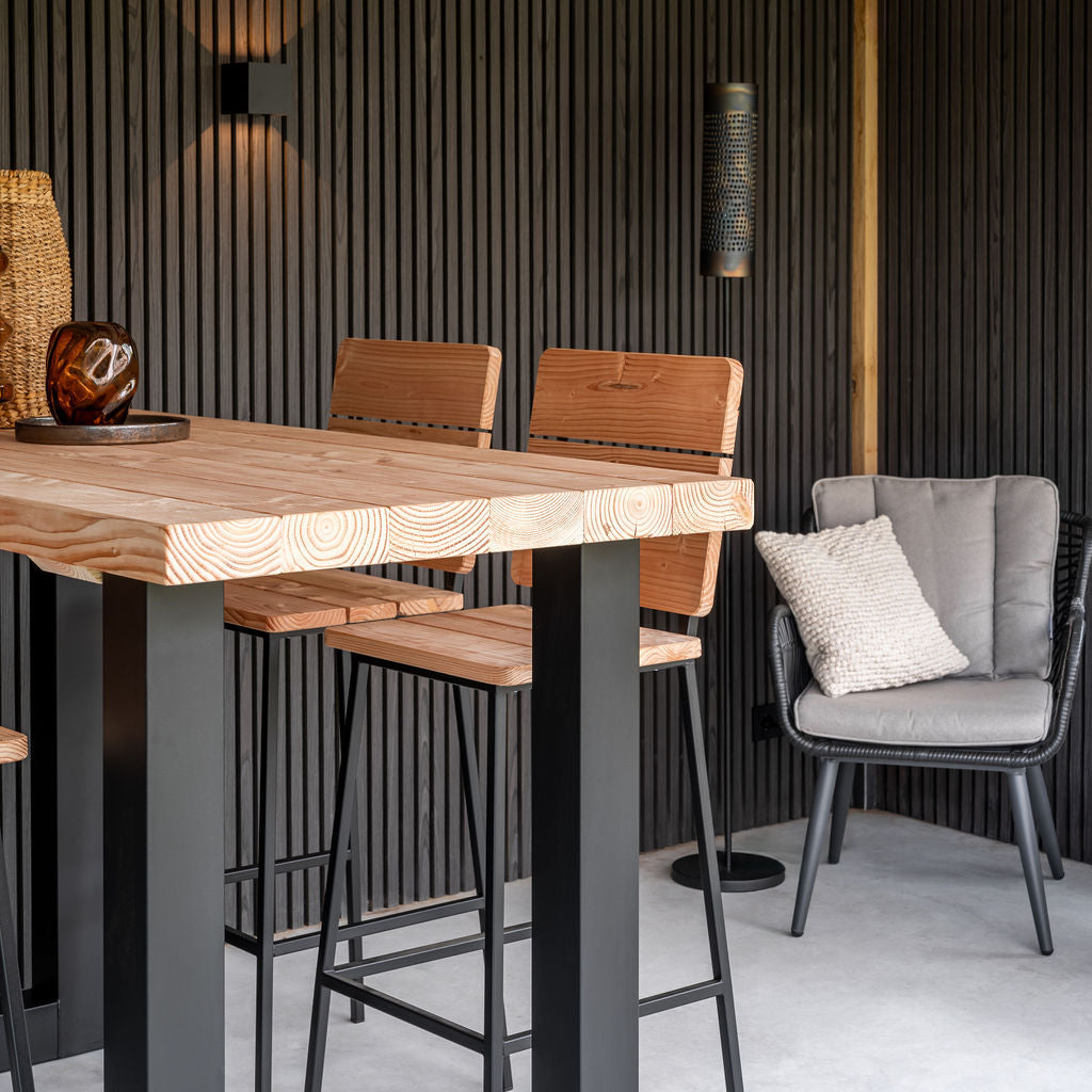 Op zoek naar een robuuste en stijlvolle bartafel voor buiten? Deze handgemaakte tafel van 6 cm dik Douglas hout is perfect voor in je tuin of onder de veranda. Het hout is van nature weerbestendig en vergrijst mooi. Liever de warme kleur behouden? Behandel het dan met olie of beits.