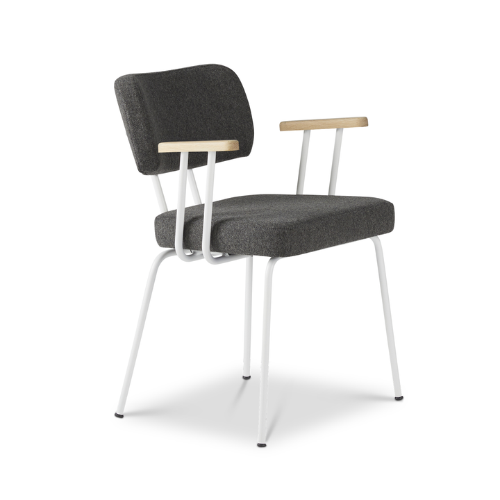 Ted eetkamerstoel met armleuning - new wool antracite - wit onderstel - armleuning hout