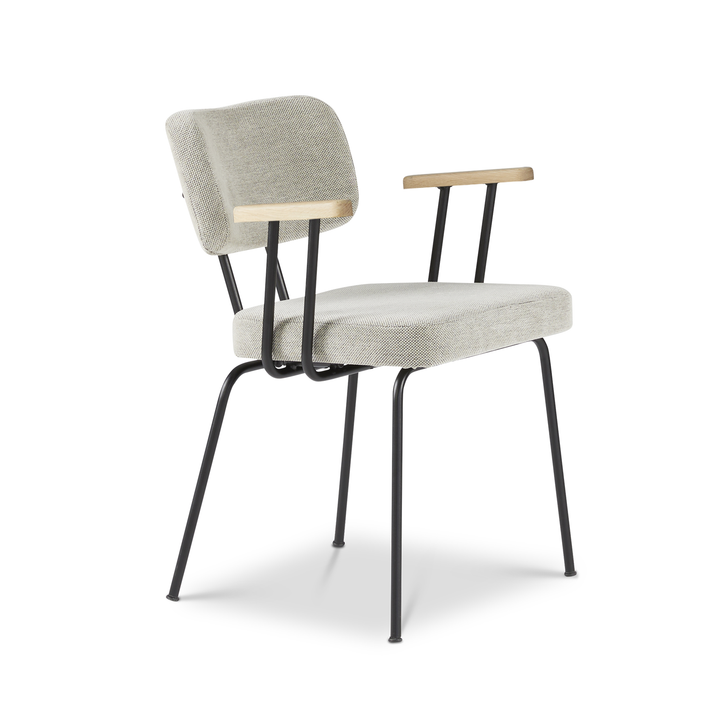 Ted eetkamerstoel met armleuning - portofino multigrey - zwart onderstel - armleuning hout